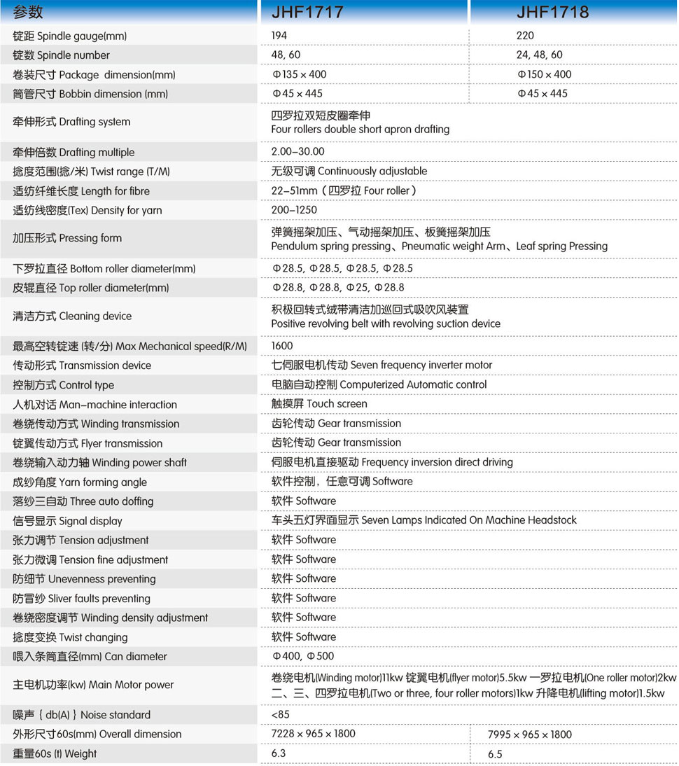 JHF1717/JHF1718全伺服棉纺电脑粗纱机优点: